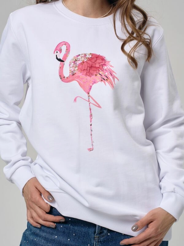Свитшот с фламингосвитшот с принтом и вышивкой