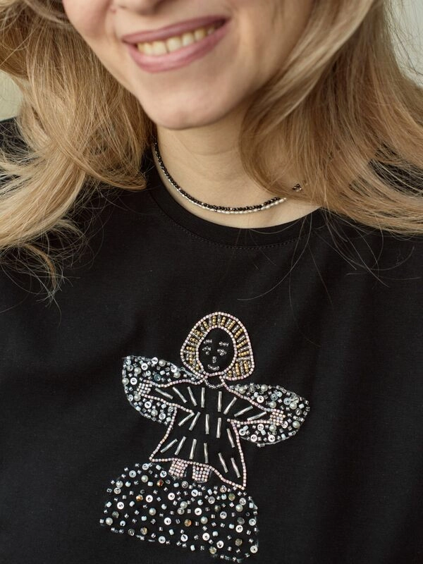 Футболка Ангел женская прямого кроя с рисунком и вышивкой ручной работы