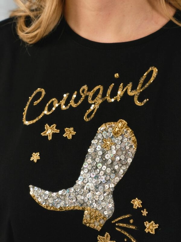 Футболка с ковбойским сапожком женская с вышивкой ручной работы прямого кроя.