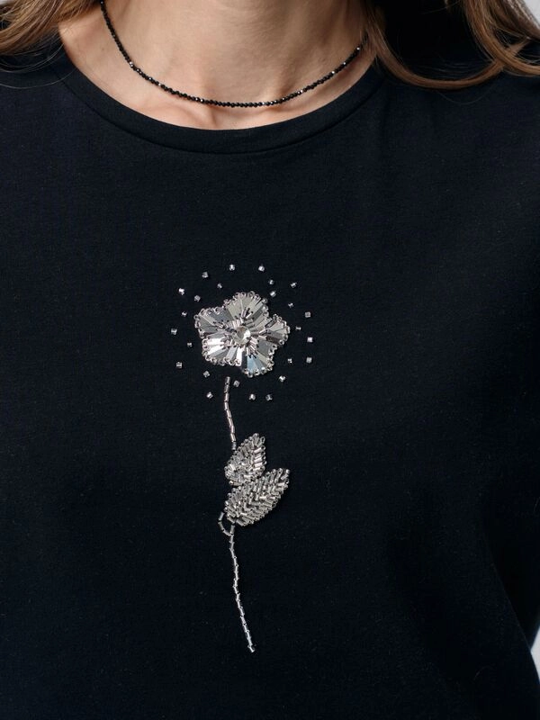 Футболка Цветок женская с вышивкой ручной работы прямого кроя.