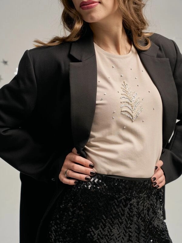 Футболка ёлочка женская прямого кроя с кутюрной вышивкой. Мы используем итальянские и французские пайетки, которыми расшиваются коллекции высокой моды, японский ювелирный бисер, чешские стеклянные бусины. Многочасовая ручная работа заряжает одежду особой энергией. Подарите себе роскошное изделие, выполненное с любовью.