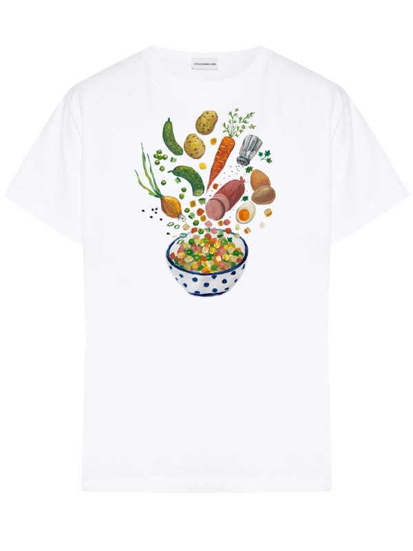Футболка Оливье женская с принтом ручной работы.