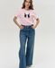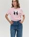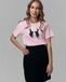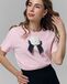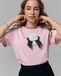 Футболка нежно-розовая прямого кроя с открепляемой брошью из плотного атласа и вышивкой ручной работы из японского бисера.