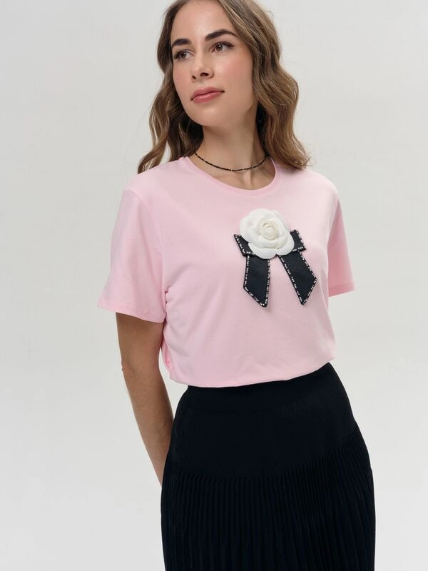 Футболка с камелией в стиле Chanelс брошью