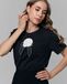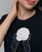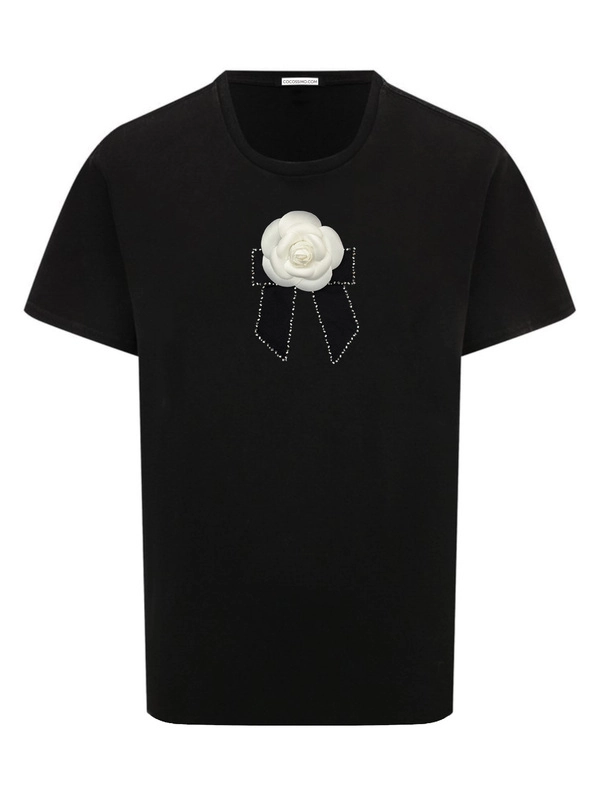 Футболка с камелией в стиле Chanel чернаяс брошью