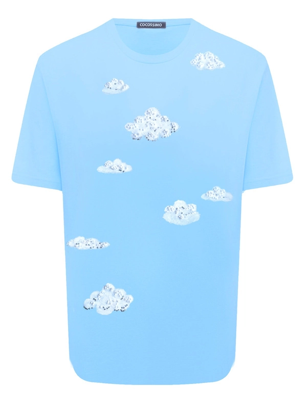 Футболка с облакамифутболка с принтами и вышивкой