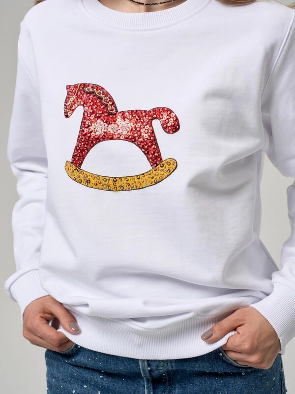 Свитшот с коникомС принтом и вышивкой
