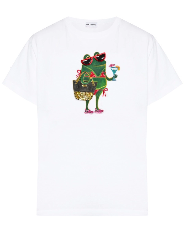 Футболка женская прямого кроя с росписью и вышивкой ручной работы. Авторский эскиз из серии про жабёнка. Роспись ручной работы.
