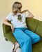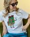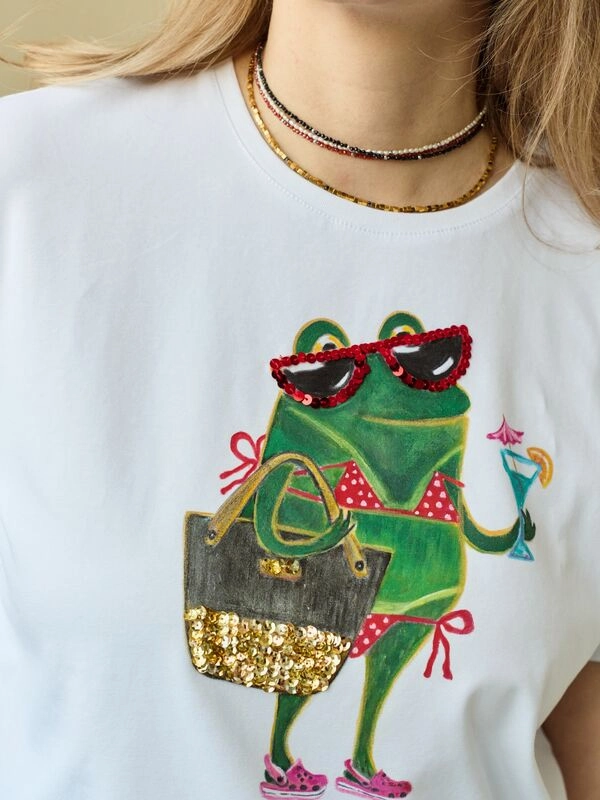 Футболка женская прямого кроя с росписью и вышивкой ручной работы. Авторский эскиз из серии про жабёнка. Роспись ручной работы.