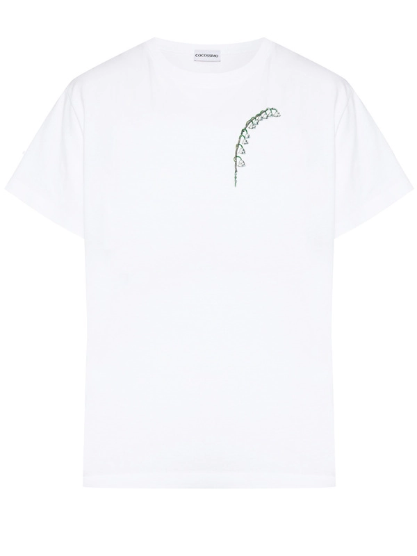 Футболка белая с ландышемс принтом и вышивкой