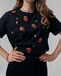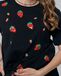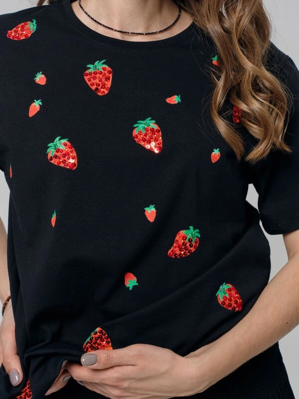 Чёрная футболка с клубниками Футболка с принтом и вышивкой